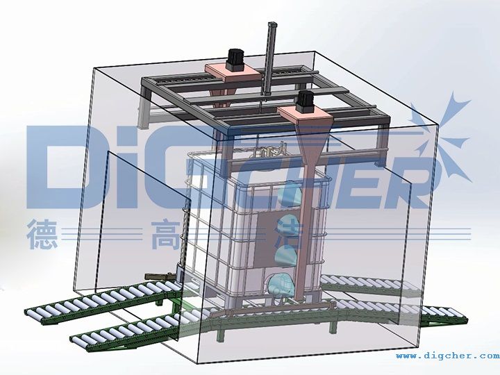 德高潔ICB噸桶高壓水自動清洗線實(shí)現(xiàn)高效全自動清洗