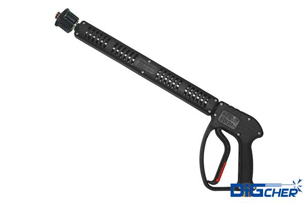 高壓噴槍通過高壓管路總成連接到高壓水泵的輸出端,是高壓清洗機(jī)的執(zhí)行兼控制系統(tǒng)。高壓噴槍可以按排放壓力的控制閥形式做進(jìn)一步定義,主要可分為兩種,溢流型和截流型。溢流型高壓水槍的工作原理是在扣動(dòng)扳機(jī)時(shí),槍上的溢流閥關(guān)閉,壓力得以迅速增大從而形成高壓水射流,當(dāng)松開扳機(jī)時(shí),槍上的溢流閥打開,水從溢流閥流出,從而釋放壓力。而截流型高壓水槍的工作原理則完全不同,扣動(dòng)扳機(jī)時(shí),壓力增大,當(dāng)松開扳機(jī)時(shí),高壓水仍保持在系統(tǒng)中,通過高壓水泵上的溢流閥流出或是循環(huán)利用。