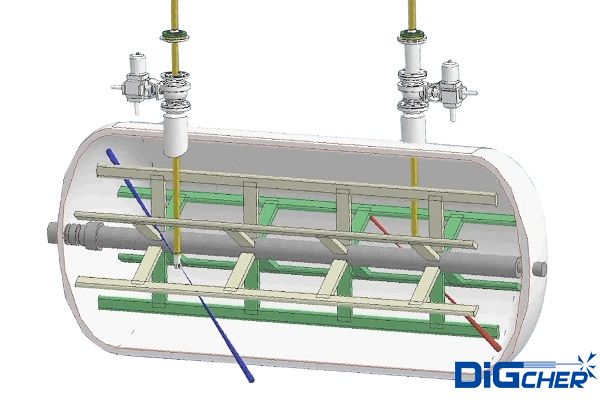 在二氟乙烯單體聚合過程中,臥式反應(yīng)釜比立式反應(yīng)釜具有更快的反應(yīng)速率,同時樹脂析出率明顯較低,樹脂各方面性能均優(yōu)。因此,臥式反應(yīng)釜在聚酯工業(yè)中的應(yīng)用非常多,尤其是最終縮聚反應(yīng)釜。臥式反應(yīng)釜是一種間歇運(yùn)行多室反應(yīng)的化學(xué)反應(yīng)釜設(shè)備,反應(yīng)釜釜體水平放置,攪拌電機(jī)設(shè)置于兩側(cè)封頭橫向放置,通常采用螺帶或螺桿式攪拌器;