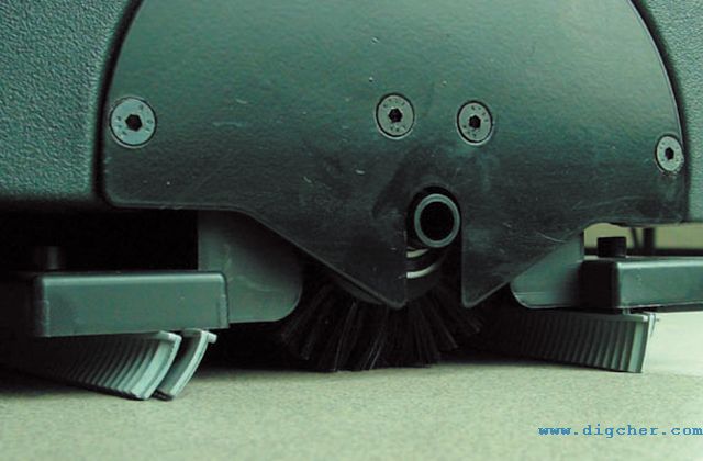 2、350mm滾刷,對(duì)地面施以高壓力,深層均勻的清潔整個(gè)地面和邊角地區(qū)。